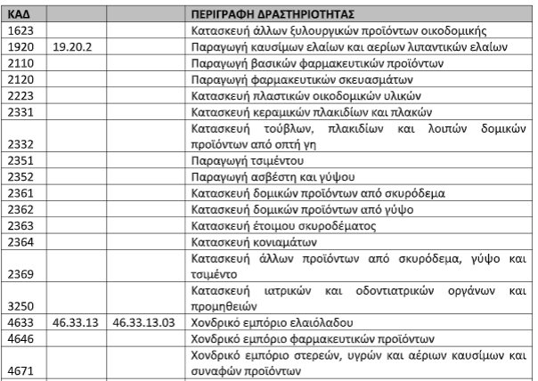 • επιχειρήσεις, ανεξαρτήτως ύψους ακαθαρίστων εσόδων, που δραστηριοποιούνται στους τομείς: