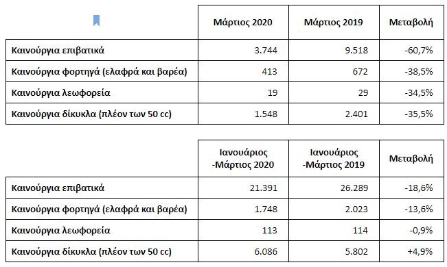 Με βάση τα πρωτογενή στοιχεία της ΕΛΣΤΑΤ και την επεξεργασία του ΣΕΑΑ οι ταξινομήσεις καινούργιων οχημάτων τον περασμένο μήνα, από το 2ο δεκαήμερο του οποίου ξεκίνησε η κρίση του κορωναϊού, έχουν ως εξής: