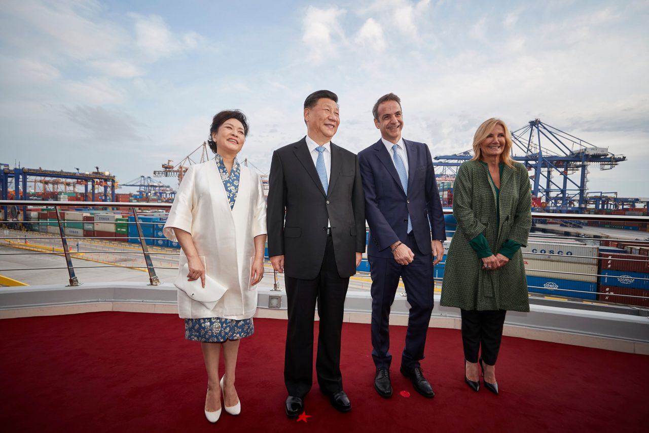 Ο Κυριάκος Μητσοτάκης και ο Σι Τζινπίνγκ, κατέφθασαν στις εγκαταστάσεις της Cosco συνοδευόμενοι από τις συζύγους τους Μαρέβα Γκραμπόφσκι – Μητσοτάκη και Peng Liyuan.