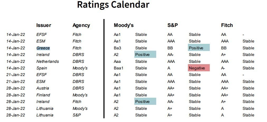Πέντε μήνες αργότερα, η επιβεβαίωση της ΕΚΤ τον Δεκέμβριο του 2021 ότι θα συνεχίσει τις αγορές ελληνικών ομολόγων μέσω ευέλικτων επανεπένδυση του προγράμματος PEPP αναγνωρίστηκε από τον οίκο Fitch ως πιστωτικά θετική. Καθώς η S&P αναθεώρησε προς τα πάνω τις προοπτικές αξιολόγησης της Ελλάδας σε θετικές τον Απρίλιο του 2021, ο Fitch είναι πολύ πιθανό να ακολουθήσει, κατά την άποψή της γαλλικής τράπεζας.