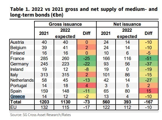 Αναφορικά με το ΡΕΡΡ και τη στήριξη του στα εγχώρια ομόλογα, η SG εκτιμά ότι στην περίπτωση της Ελλάδας, η ΕΚΤ θα αγοράσει τίτλους ύψους 3 δισ. ευρώ το 2022 στο πλαίσιο του προγράμματος PEPP,ενώ έχει ήδη αγοράσει ελληνικά ομόλογα αξίας 18 δισ. ευρώ υπό το PEPP το 2020 και άλλα τόσα το 2021.