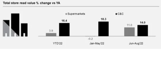 Σε επίπεδα καναλιών, τα Cash & Carry συνεχίζουν να αναπτύσσονται σημαντικά το 2022, σε όλες τις χρονικές περιόδους, περισσότερο από το κανάλι των super markets, καθώς οι όποιοι περιορισμοί υπήρχαν στο κανάλι του HoReCa τους πρώτους μήνες του 2021 έπαψαν να υφίστανται την τρέχουσα χρονιά.