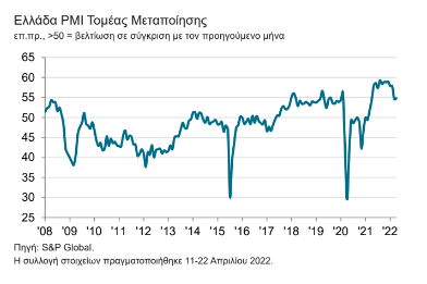 Ο εποχικά προσαρμοσμένος Δείκτης Υπευθύνων Προμηθειών της S&P Global για τον τομέα μεταποίησης στην Ελλάδα (Purchasing Managers’