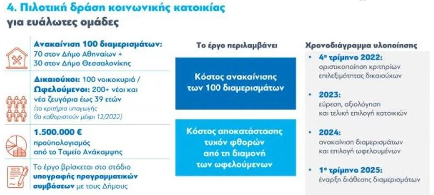 3. Πιλοτική δράση κοινωνικής κατοικίας για ευάλωτες ομάδες – ήδη ενταγμένη στο Ταμείο Ανάκαμψης