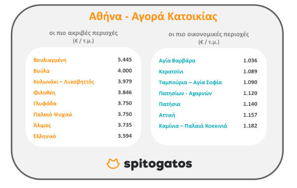 Οι ακριβότερες και οικονομικότερες περιοχές για αγορά και ενοικίαση κατοικίας στην Αθήνα