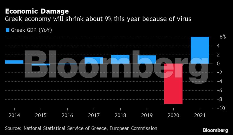 Η ελληνική κυβέρνηση προβλέπει ότι η οικονομία θα συρρικνωθεί κατά περίπου 8% φέτος, ενώ η Ευρωπαϊκή Επιτροπή αναμένει ακόμα βαθύτερη ύφεση.