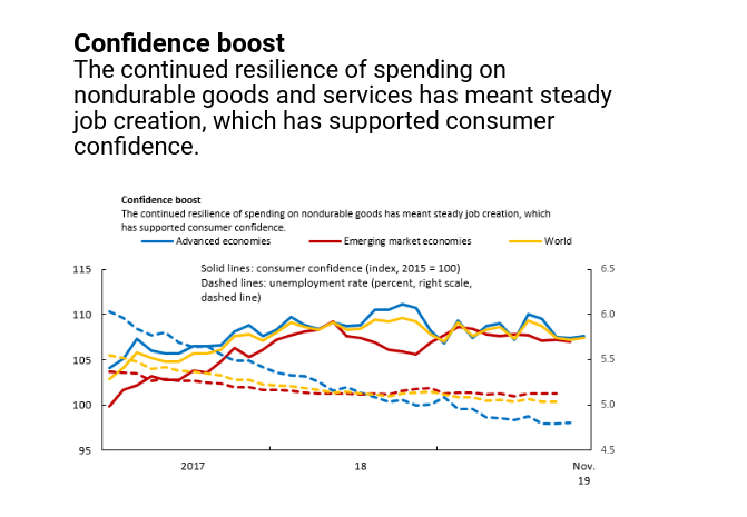 Η αντοχή της καταναλωτικής δαπάνης σε μη διαρκή αγαθά και υπηρεσίες συμβάλλει στη δημιουργία απασχόλησης, γεγονός που στηρίζει την καταναλωτική εμπιστοσύνη.