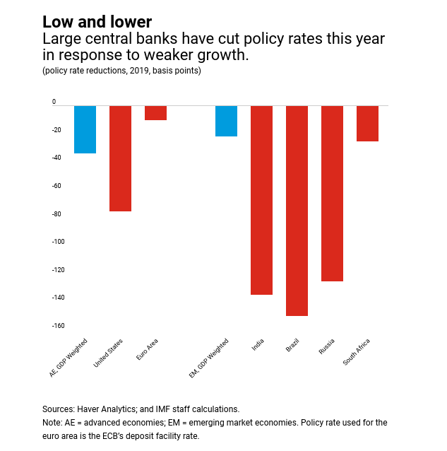 Γράφημα 4: Πόσο μείωσαν οι παγκόσμιες τράπεζες τα επιτόκια το 2019 για να αντιμετωπίσουν την αδύναμη ανάπτυξη