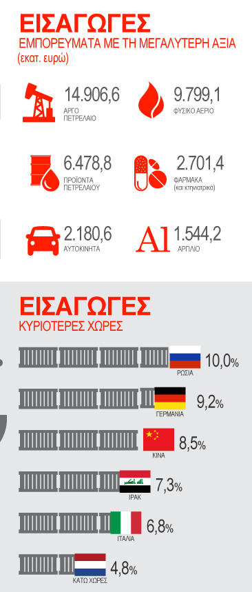 - το 7,3% των εισαγωγών έγιναν από το Ιράκ (πετρέλαια)