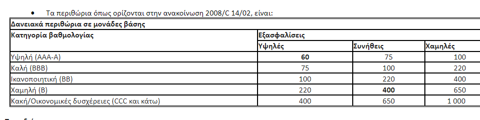 - Το επιτόκιο αναφοράς αποτελείται από το βασικό επιτόκιο προσαυξημένο με τα περιθώρια της ως άνω ανακοίνωσης, ανάλογα με τη βαθμολογία της οικείας επιχείρησης και τις παρεχόμενες εξασφαλίσεις.