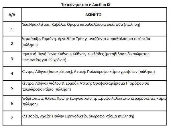 Οσον αφορά ειδικότερα τα ακίνητα του e-Auction IX πρόκειται για τα εξής: