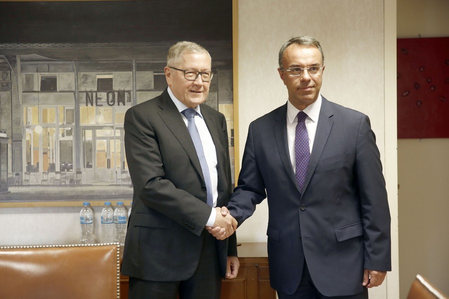 Σε θετικό κλίμα πραγματοποιήθηκε σήμερα η πρώτη επίσημη συνάντηση του υπουργού Οικονομικών κ. Σταϊκούρα με τον Εκτελεστικό Διευθυντή του Ευρωπαϊκού Μηχανισμού Σταθερότητας (ΕSM) Κλάους Ρέγκλινγκ, στο υπουργείο Οικονομικών. Νωρίτερα είχε συνάντηση με τον επικεφαλής του κλιμακίου του ΔΝΤ για την Ελλάδα Πήτερ Ντόλμαν, ενώ αύριο θα συναντήσει και τον επικεφαλής του κλιμακίου της Κομισιόν Ντέκλαν Κοστέλο, που βρίσκονται επίσης στην Αθήνα από σήμερα.