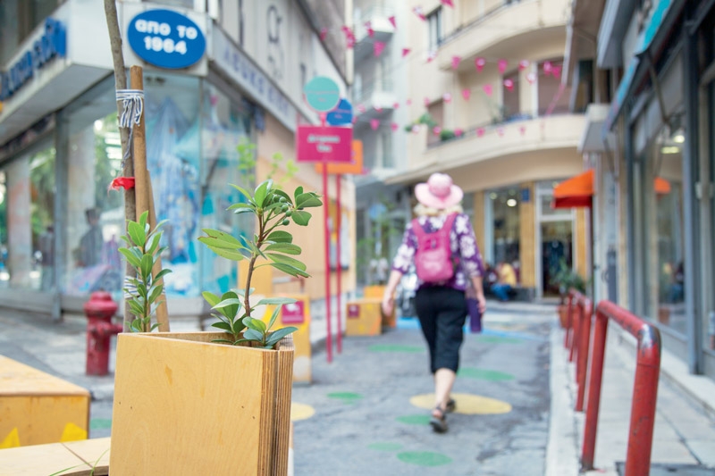«Και οι 22 δρόμοι έχουν χαρακτηριστεί πεζόδρομοι με διαφορετικά ΦΕΚ από το 1979 ως το 2001», αναφέρει η κυρία Δάλλα. «Προχωράμε εφαρμόζοντας αυτό που έχει ορίσει ο νομοθέτης, πηγαίνοντας ταυτόχρονα ένα βήμα παραπέρα. Ακούσαμε τις ανάγκες και τις προτεραιότητες καταστηματαρχών και επισκεπτών μέσα από έρευνα που κάναμε τον Ιανουάριο του 2017 σε 1.500 επισκέπτες και πάνω από 100 καταστημάταρχες και τις ενσωματώσαμε στις παρεμβάσεις μας. Οι επισκέπτες δήλωσαν ότι θα επισκέπτονταν συχνότερα το εμπορικό τρίγωνο αν είχαν περισσότερους ανοιχτούς χώρους. Το 57,5% είπε ότι θα ήθελε λιγότερες μουντζούρες στους τοίχους και παραπάνω καθαριότητα, ενώ το 56% των επισκεπτών δήλωσε ότι θα ήθελε περισσότερο χώρο για περπάτημα. Σε ό,τι αφορά τους καταστηματάρχες, το 68,3% θεωρεί σοβαρό πρόβλημα την παράνομη στάθμευση, το 66,7% την έλλειψη αστυνόμευσης, το 65% την έλλειψη φωτισμού και το 70% την καθαριότητα.