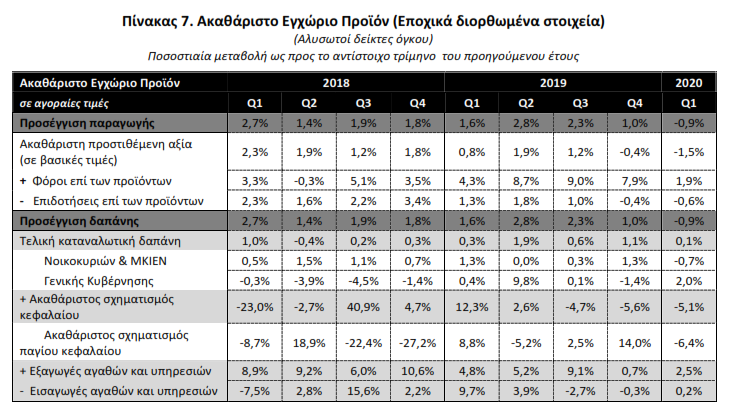 – Η συνολική τελική καταναλωτική δαπάνη παρουσίασε αύξηση κατά 0,1% σε σχέση με το 1o τρίμηνο του 2019.