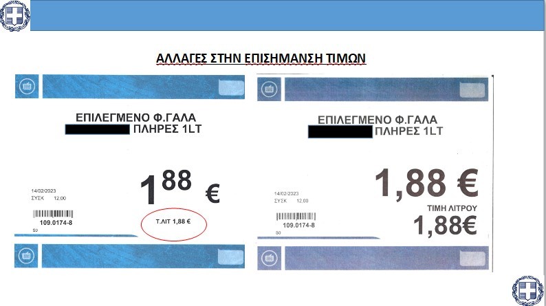 Αριστερά, στην εικόνα που κρατά ο υπουργός, τα ταμπελάκια σήμερα και δεξιά όπως θα πρέπει να είναι στο άμεσο μέλλον: