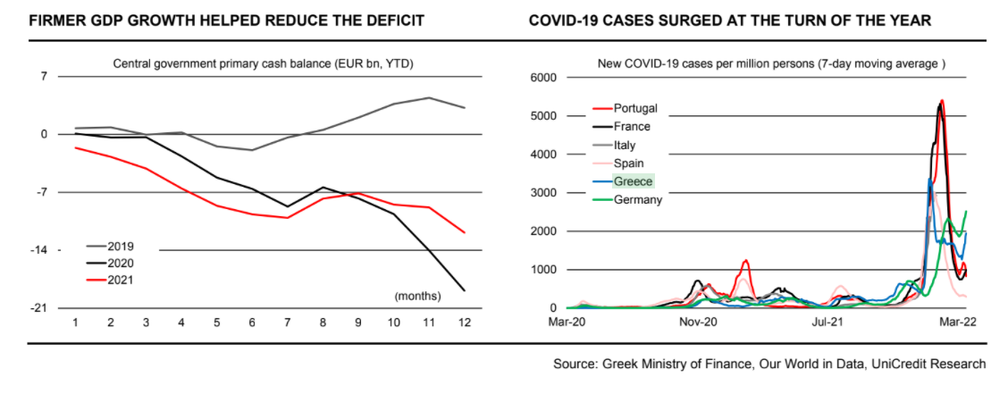 Αν και η ιταλική Unicredit αναμένει αύξηση του ΑΕΠ κατά 4,3% το 2022 (από 3,9% προηγουμένως) και 3,5% το 2023 (από 4% προηγουμένως), υψηλό επίπεδο αβεβαιότητας περιβάλλει τις προβλέψεις της.