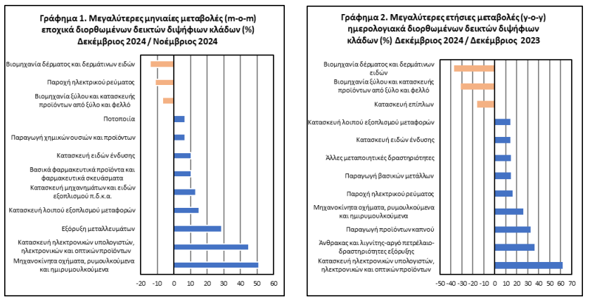 Ενώ, ο εποχικά διορθωμένος γενικός δείκτης παρουσίασε αύξηση 2,4% τον Δεκέμβριο 2024 σε σύγκριση με τον αντίστοιχο δείκτη του Νοεμβρίου 2024.