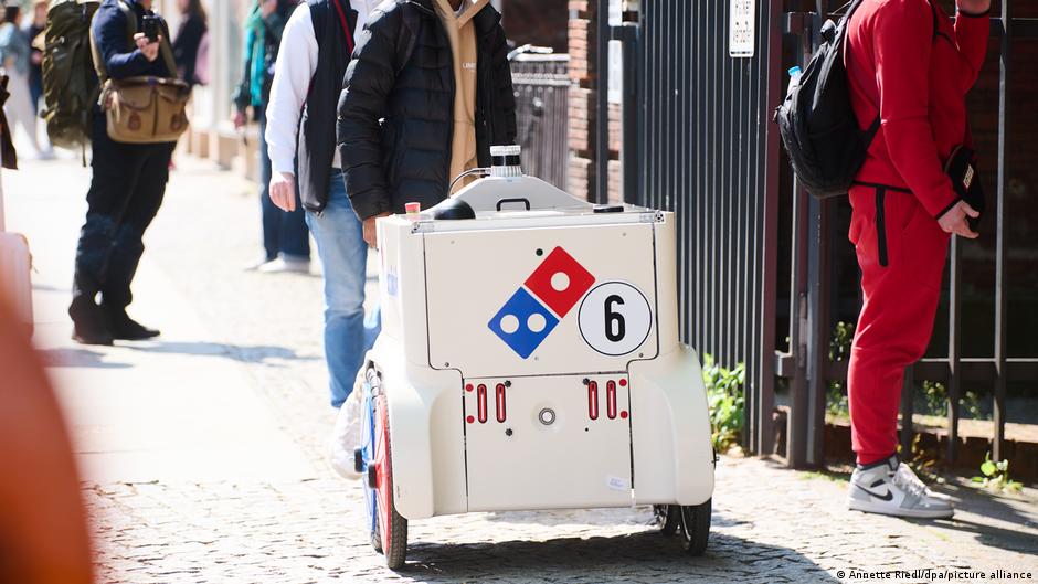Tο ρομπότ διασχίζει τα πεζοδρόμια του Βερολίνου αρκετές φορές την ημέρα, για να παραδώσει τις πίτσες στους πελάτες. Στα πλαίσια ενός πιλοτικού προγράμματος η εταιρεία μελετά το κατά πόσον η χρήση τέτοιων μηχανών μπορεί να φανεί χρήσιμη στις διανομές φαγητού. Το ρομπότ κουβαλάει τις πίτσες κυριολεκτικά… μέσα του, δηλαδή σε ένα ντουλάπι. Χάρη σε τέσσερις αισθητήρες και πολλές κάμερες έχει όραση 360 μοιρών, εντοπίζοντας εμπόδια μπροστά ή πίσω του, οπότε και επιβραδύνει ή σταματά τελείως.