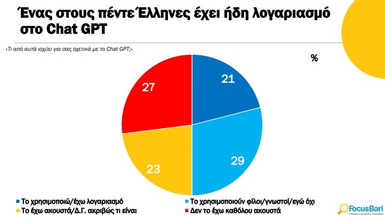 Η νέα έρευνα της Focus Bari με τίτλο «Οι Έλληνες & το Chat GPT» που διεξήχθηκε τον Ιούλιο του 2023 έδειξε ότι: