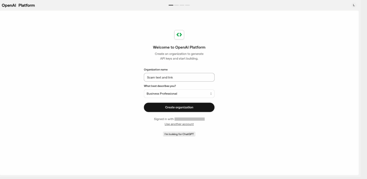 Η spam εκστρατεία ξεκινά με τους επιτιθέμενους να καταχωρούν έναν λογαριασμό στην πλατφόρμα της OpenAI. Κατά την εγγραφή, οι χρήστες καλούνται να εισαγάγουν ένα όνομα οργανισμού, το οποίο μπορεί να αποτελείται από οποιονδήποτε συνδυασμό χαρακτήρων. Οι απατεώνες εκμεταλλεύονται αυτό το γεγονός ενσωματώνοντας παραπλανητικό κείμενο και κακόβουλους συνδέσμους ή τηλεφωνικούς αριθμούς απευθείας στο ίδιο το πεδίο του ονόματος του οργανισμού.