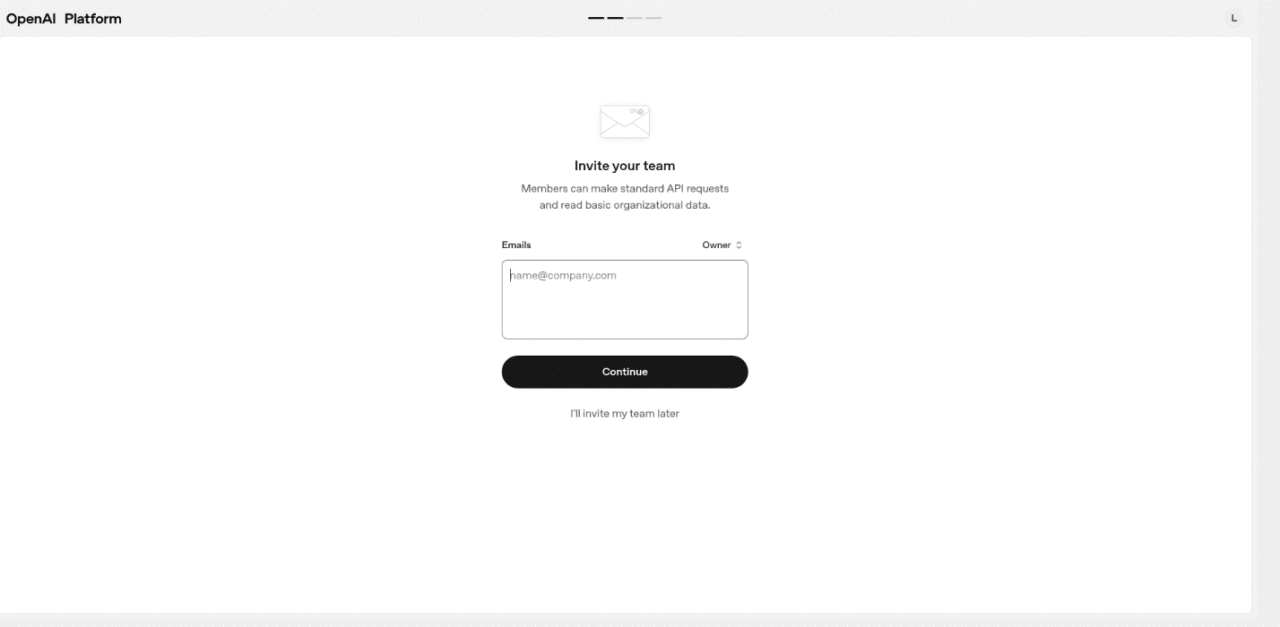 Μόλις δημιουργηθεί ο «οργανισμός», η OpenAI παρέχει την επιλογή «προσκαλέστε την ομάδα σας», επιτρέποντας την εισαγωγή των email των στοχευμένων θυμάτων.