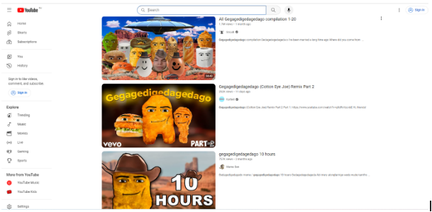 Τα memes είναι συνήθως ένα σημαντικό μέρος των ενδιαφερόντων των παιδιών παγκοσμίως. Αυτή τη φορά το πιο αξιοσημείωτο ήταν το «Gegagedigedagedago» – το meme του Roblox Male Face με το τραγούδι «Cotton Eye Joe» των Rednex, το οποίο ερμηνεύτηκε με λάθος τρόπο.