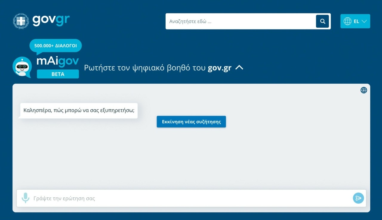 Από τον Δεκέμβριο του 2023 η Τεχνητή Νοημοσύνη έχει ενσωματωθεί στον μηχανισμό του Ελληνικού Δημοσίου για την εξυπηρέτηση των πολιτών και την αλληλεπίδραση μαζί τους. Το mAIgov.gr είναι η εξέλιξη του -ήδη ευρύτατα γνωστού και πολλαπλώς εύχρηστου- gov.gr. Πολύ σχηματικά, το mAIgov.gr αποτελεί τον πρώτο «ψηφιακό βοηθό» δημόσιο υπερ-υπάλληλο, ένα chatbot-μεσολαβητή μεταξύ του πολίτη και του κράτους. Αυτό σημαίνει στην πράξη ότι ο εκάστοτε χρήστης της εφαρμογής πληκτρολογεί μια ερώτηση ή ένα αίτημα και το ρομπότ του mAIgov.gr μέσα σε ελάχιστα δευτερόλεπτα παρέχει μια απόκριση. Βεβαίως, δεδομένου ότι ο ψηφιακός βοηθός διανύει τα πρώτα βήματά του σε πραγματική λειτουργία (η τρέχουσα μορφή του είναι «beta», ήτοι υπό εξέλιξη), τα αιτήματα που μπορεί να ικανοποιήσει είναι περιορισμένα. Ωστόσο, η ύπαρξή του είναι γεγονός, και μάλιστα κομβικής σημασίας, ενώ οι προοπτικές ανάπτυξης του mAIgov.gr είναι απεριόριστες.