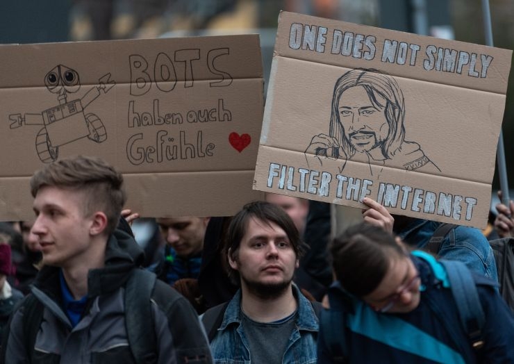 Σε διαφορετική περίπτωση, ειδικά φίλτρα θα εμποδίζουν τη δημοσίευση έργου, για το οποίο δεν υπάρχει έγκριση του δημιουργού. Εδώ ακριβώς είναι η διαφωνία ανάμεσα σε αυτούς που λένε, ότι «πρέπει να μπει μια τάξη» στο διαδίκτυο και εκείνους που υποστηρίζουν, ότι «κινδυνεύει η ελευθερία του λόγου». Οι πρώτοι, στους οποίους ανήκει η πλειοψηφία του Ευρωκοινοβουλίου, θεωρούν ότι η ρύθμιση προστατεύει τους δημιουργούς, καθώς υποχρεώνει μεγάλες ψηφιακές πλατφόρμες (Google News, YouTube κ.α.) να μοιράζονται τα κέρδη τους με μουσικούς, ηθοποιούς ή δημοσιογράφους που δραστηριοποιούνται σε ψηφιακό περιβάλλον.