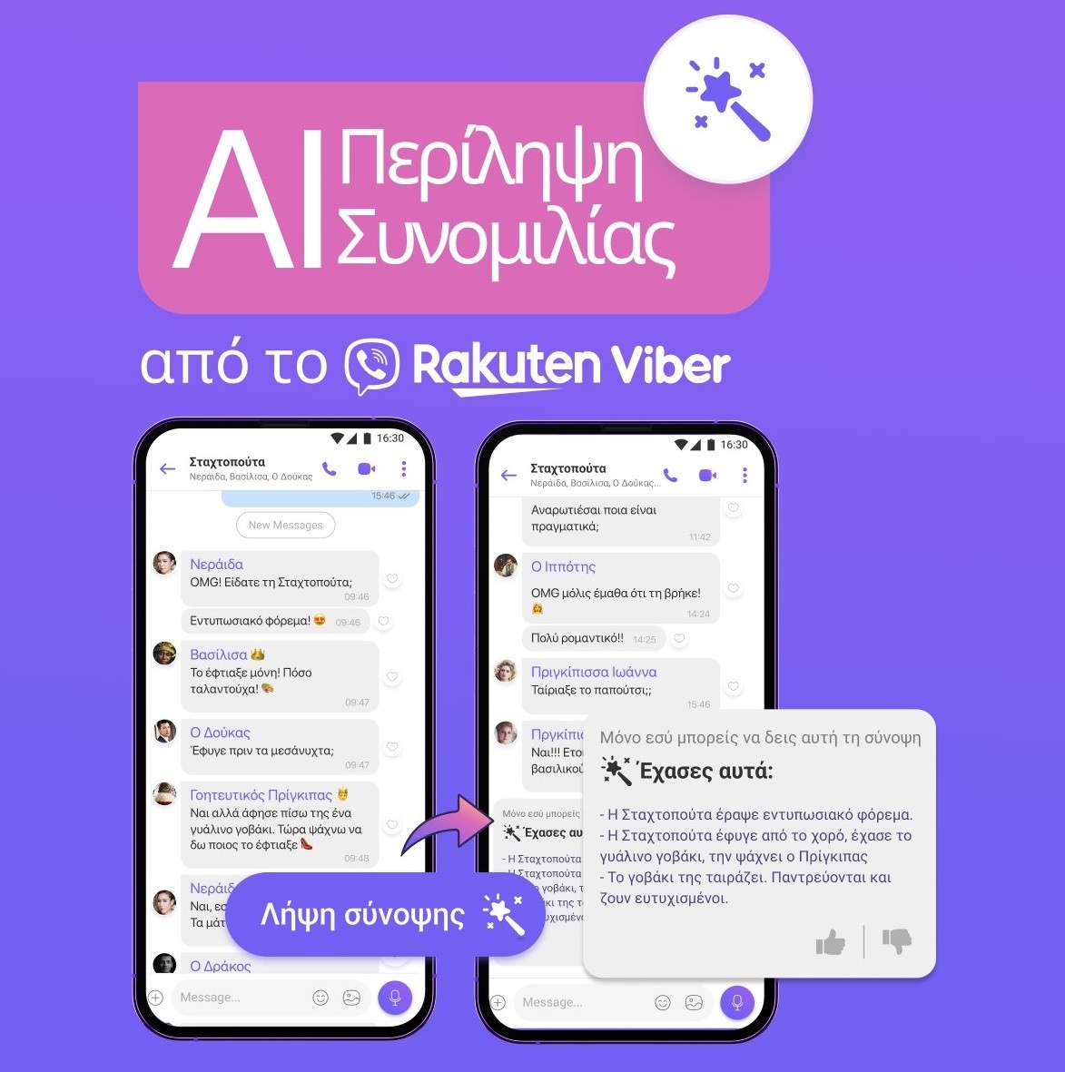 Εστιάζοντας αρχικά στις ομαδικές συνομιλίες, η λειτουργία περίληψης μέσω τεχνητής νοημοσύνης εξυπηρετεί τη δημοφιλέστερη μορφή επικοινωνίας μεταξύ των χρηστών του Viber. Οι οποίοι πλέον θα μπορούν να βλέπουν συγκεντρωμένες τις πιο σημαντικές αποφάσεις και επιχειρήματα σε μια συζήτηση για βολική ανάγνωση. Φανταστείτε την ευκολία που θα προσφέρει η λειτουργία αυτή στους γονείς που διαχειρίζονται τις σχολικές ή αθλητικές εκδηλώσεις των παιδιών τους μέσω συνεργατικών συζητήσεων, τα μέλη της οικογένειας που σχεδιάζουν ένα πάρτι γενεθλίων για ένα αγαπημένο τους πρόσωπο ή τις ομάδες φίλων που ετοιμάζουν μαζί ένα ταξίδι.