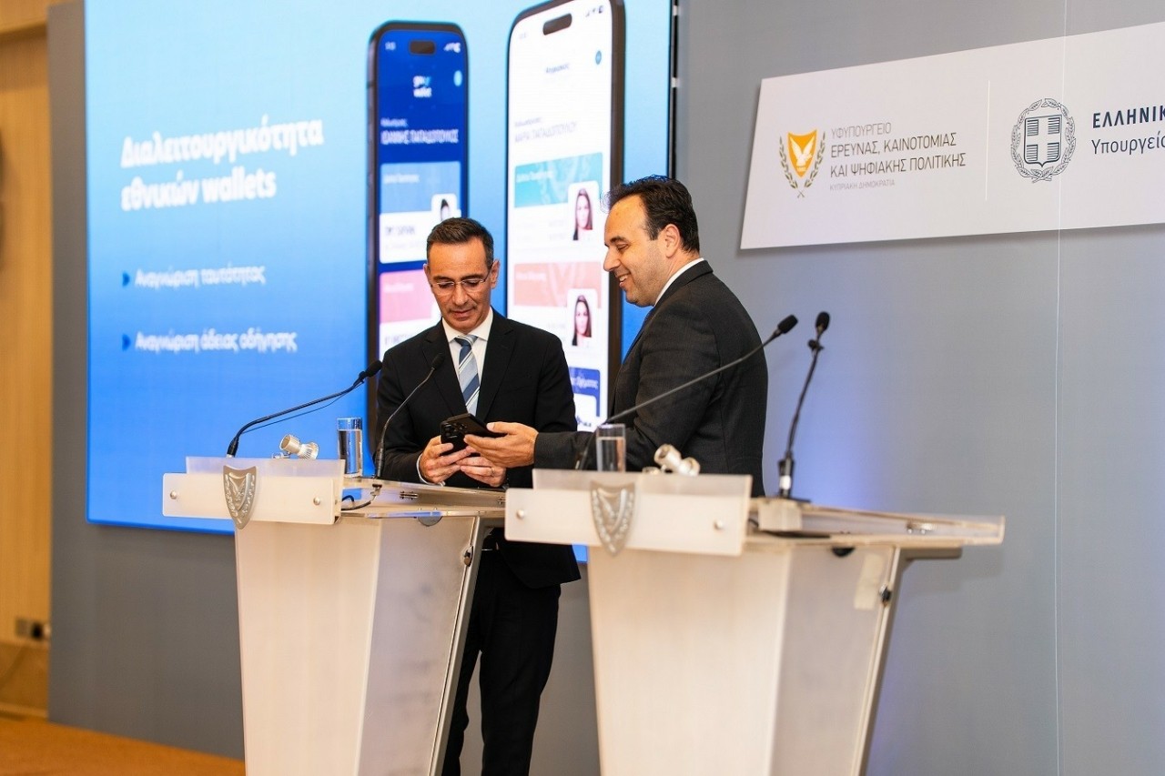 Σε λειτουργία τίθεται από σήμερα η διαλειτουργικότητα μεταξύ των ψηφιακών πορτοφολιών Ελλάδας και Κύπρου «Gov.gr Wallet» και «Ψηφιακός Πολίτης». Με τον τρόπο αυτό διευκολύνεται ουσιαστικά η καθημερινότητα για πολίτες και επιχειρηματίες, που ζουν και δραστηριοποιούνται στις δύο χώρες. Την παρουσίαση πραγματοποίησαν σήμερα (19.05.2025) στο Προεδρικό Μέγαρο στη Λευκωσία ο Υφυπουργός Έρευνας, Καινοτομίας και Ψηφιακής Πολιτικής της Κυπριακής Δημοκρατίας, Δρ. Νικόδημος Δαμιανού και ο Υπουργός Ψηφιακής Διακυβέρνησης, Δημήτρης Παπαστεργίου.
