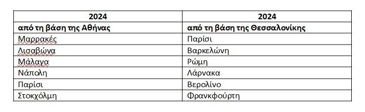 Top προορισμοί εξωτερικού από τις δυο μεγαλύτερες βάσεις της Αθήνας και της Θεσσαλονίκης: