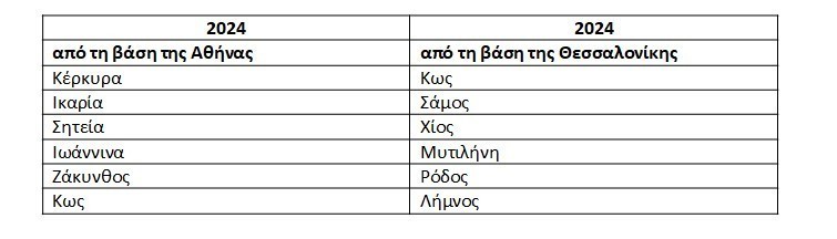 Top προορισμοί εσωτερικού από τις δυο μεγαλύτερες βάσεις της Αθήνας και της Θεσσαλονίκης: