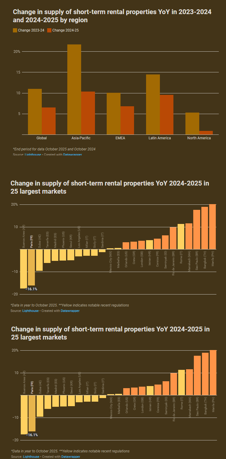 Ωστόσο, ο ρυθμός επέκτασης ενδέχεται να χάνει μέρος της δυναμικής του. Οι κυβερνήσεις στρέφονται όλο και περισσότερο προς τη ρύθμιση και τη φορολογία για να διαχειριστούν την αύξηση των ενοικιάσεων.