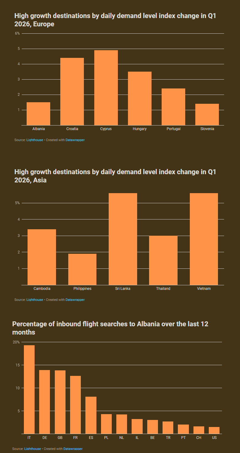 Η χρήση της τεχνητής νοημοσύνης για τον προγραμματισμό ταξιδιών διπλασιάστηκε κατά το παρελθόν έτος. Οι αναλυτές της Lighthouse αναμένουν ότι αυτή η αύξηση θα επιταχυνθεί ραγδαία το 2026, με την γενεσιουργή τεχνητή νοημοσύνη να ξεπερνά τον προγραμματισμό ταξιδιών και να γίνεται βασικό εργαλείο για αναζήτηση, σύγκριση και κράτηση.