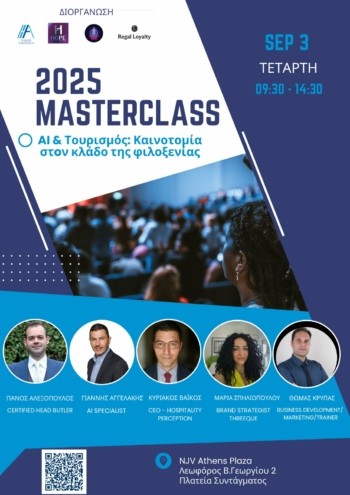 Με αυτό το όραμα, το Masterclass: AI & Τουρισμός – Καινοτομία στον κλάδο της φιλοξενίας έρχεται την Τετάρτη, 3 Σεπτεμβρίου 2025 (09:30–14:30) στο ξενοδοχείο NJV Athens Plaza. Πρόκειται για μια σπάνια πρωτοβουλία στον κλάδο, όπου η θεωρία συναντά την πράξη, μέσα από: