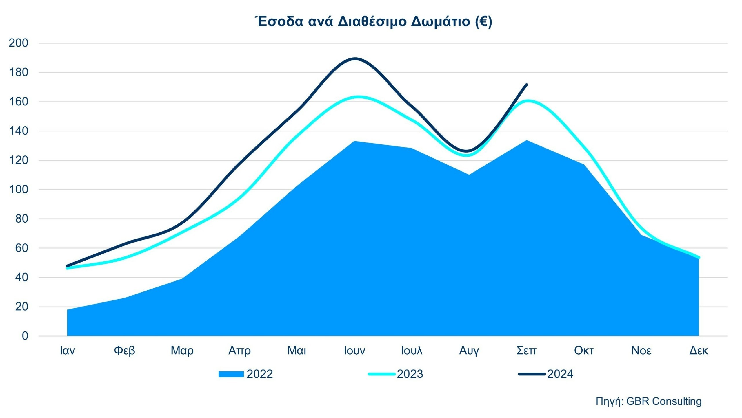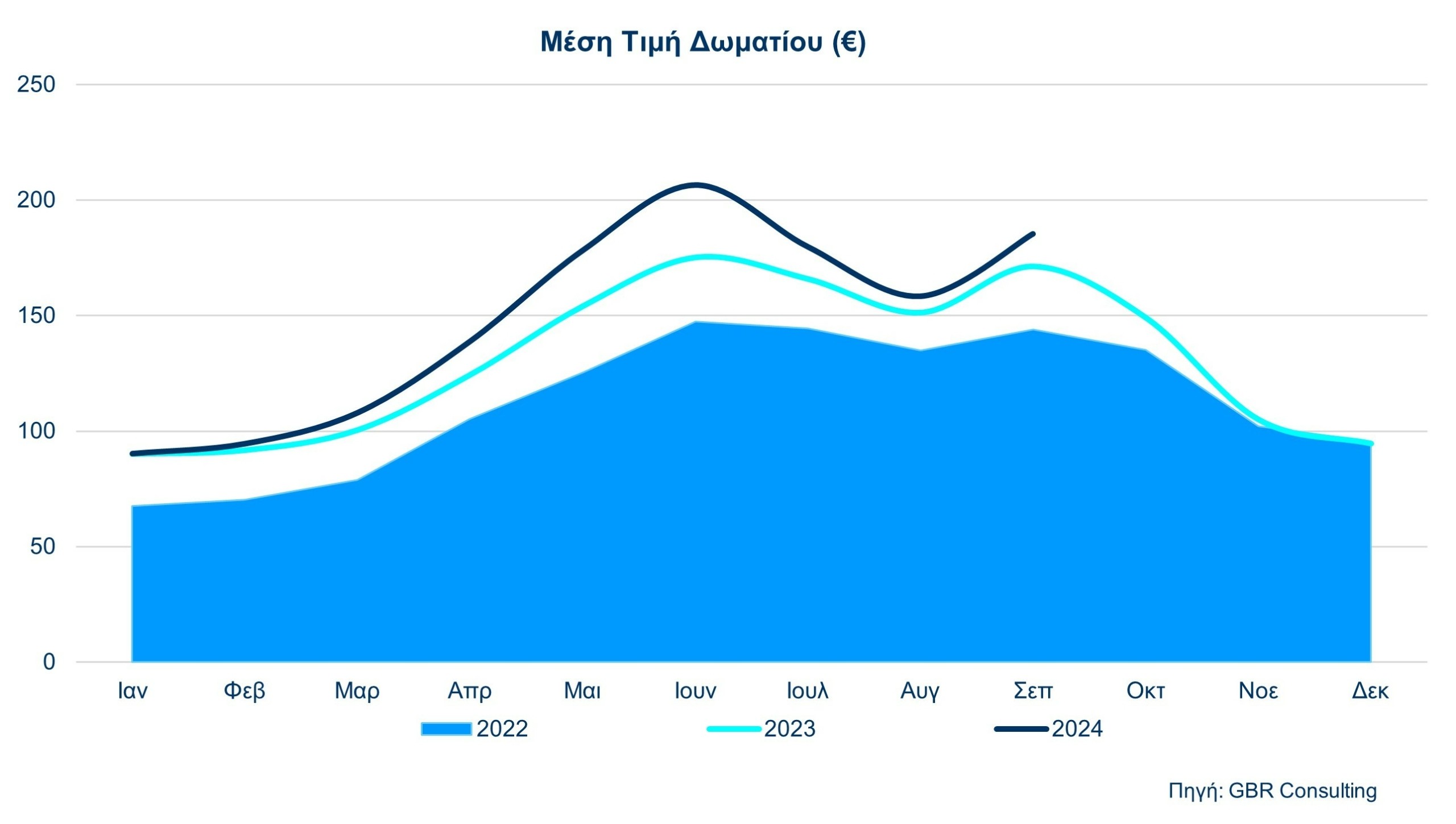 Από πλευράς μέσης τιμής δωματίου (ADR), συγκρίνοντας το Σεπτέμβριο του 2024 με το 2023, η Αθήνα σημείωσε αύξηση της τάξης του 8,1%. Στη Ρώμη και την Κωνσταντινούπολη η μέση τιμή μειώθηκε 8,3% και 3,8% αντίστοιχα, ενώ στη Βαρκελώνη και τη Μαδρίτη σημειώθηκε σημαντική αύξηση 19,5% και 18,9% αντίστοιχα.