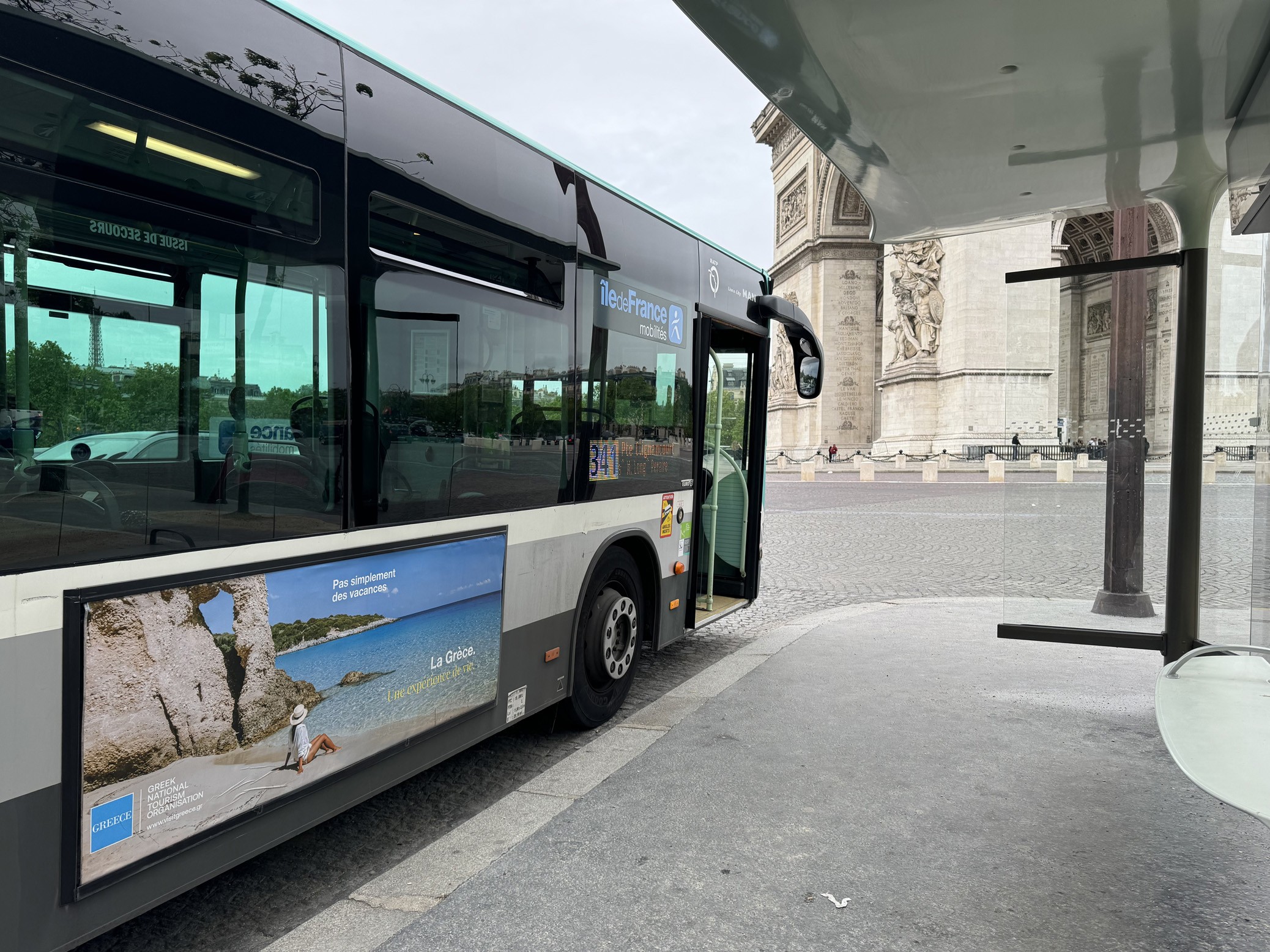 Από τις 24 Μαΐου έως και τις 13 Ιουνίου η χώρα μας προβλήθηκε με διαφημιστικές καταχωρήσεις του ΕΟΤ σε συνολικά 2006 επιφάνειες λεωφορείων της Περιφέρειας του Île-de-France, που περιλαμβάνει 172 κοινότητες, από το κεντρικό Παρίσι μέχρι τις Βερσαλλίες και τη Ναντέρ. Το κεντρικό σλόγκαν ήταν «Ελλάδα, μία εμπειρία ζωής» (La Grèce – Une expérience de vie), που συμπληρωνόταν με τη φράση «Κάτι περισσότερο από διακοπές» (Pas seulement des vacances).