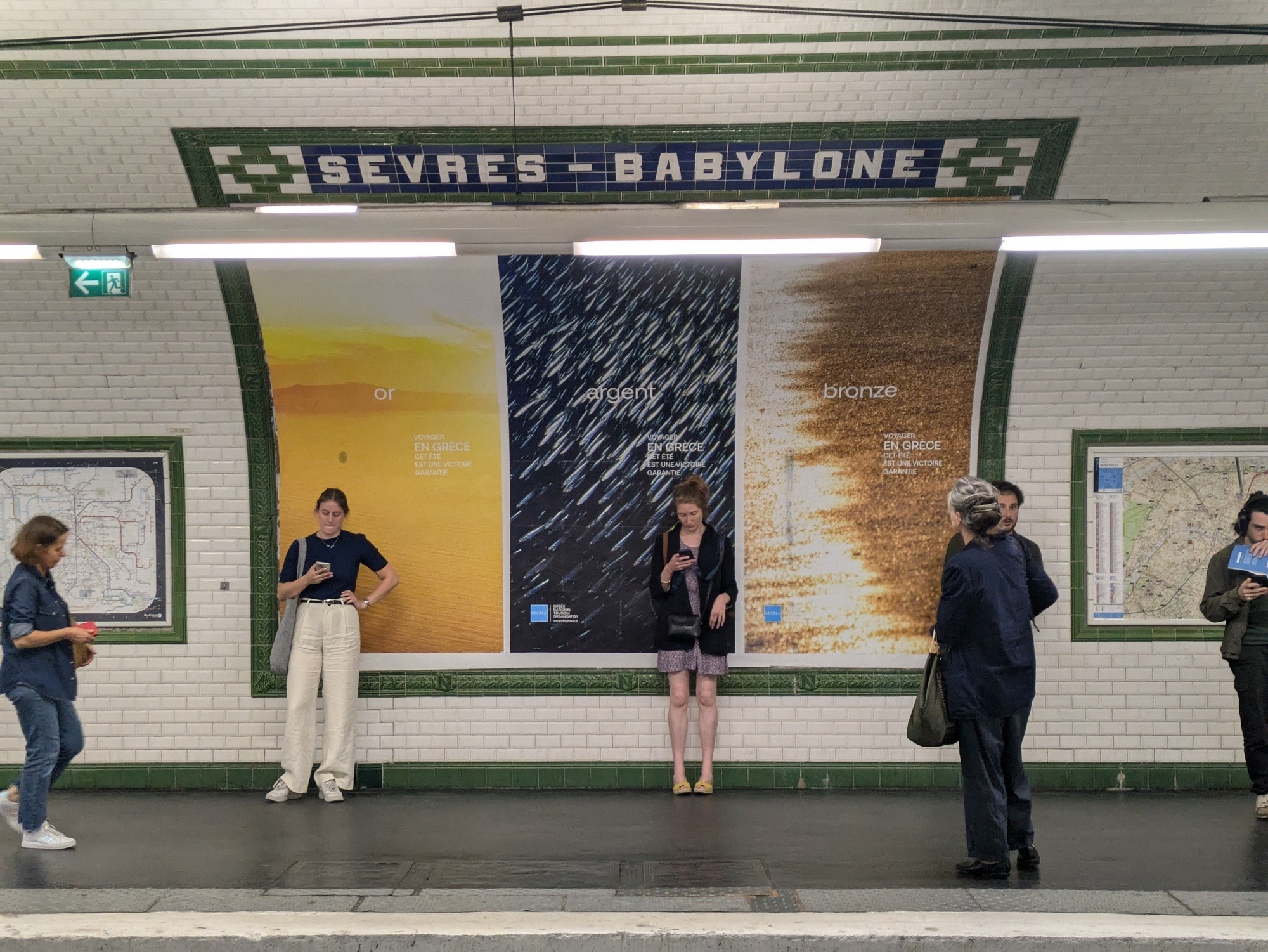 Αντίστοιχα, στο διάστημα 18 Ιουνίου-1 Ιουλίου υλοποιήθηκε, σε συνεργασία με την εταιρεία Ogilvy, διαφημιστική προβολή της Ελλάδας στο μετρό του κεντρικού Παρισίου και στην ευρύτερη περιοχή του Île-de-France, που περιλάμβανε 120 έντυπες διαφημίσεις, μεγέθους 12 τ.μ., σε 110 σταθμούς μετρό και 10 digital διαφημίσεις σε μεγάλες ψηφιακές οθόνες. Στις αφίσες και τις ψηφιακές διαφημίσεις κυριαρχούσαν το χρυσό χρώμα (με απεικόνιση ελληνικού ηλιοβασιλέματος), το ασημί (βυθός ελληνικής θάλασσας) και το μπρούτζινο (ελληνική αμμώδης παραλία), που αντιστοιχούν στα χρώματα των ολυμπιακών μεταλλίων, ενώ το κύριο μήνυμα ήταν «Το ταξίδι στην Ελλάδα αυτό το καλοκαίρι είναι μία εξασφαλισμένη νίκη» (Voyager en Grèce cet été est une victoire garantie).