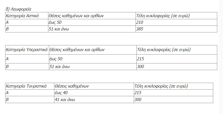 Ο τρίτος πίνακας της υποπερ. δ της περ. Β της παρ. 1 του άρθρου 20 του Ν. 2948/2001 (Α΄ 242), αντικαθίσταται λόγω εξίσωσης των τελών κυκλοφορίας των τουριστικών λεωφορείων με αυτά των υπεραστικών και η υποπερ. δ διαμορφώνεται ως εξής: