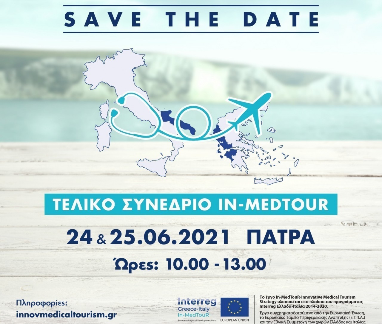 Με βασικό γνώμονα την αξιοποίηση της δυναμικής του ιατρικού τουρισμού, η Ελλάδα συμμετέχει στο έργο In MedTouR – “Innovative Medical Tourism Strategy” το οποίο υλοποιείται στο πλαίσιο του Προγράμματος Ευρωπαϊκής Εδαφικής Συνεργασίας “Interreg V-A Ελλάδα-Ιταλία 2014-2020”.