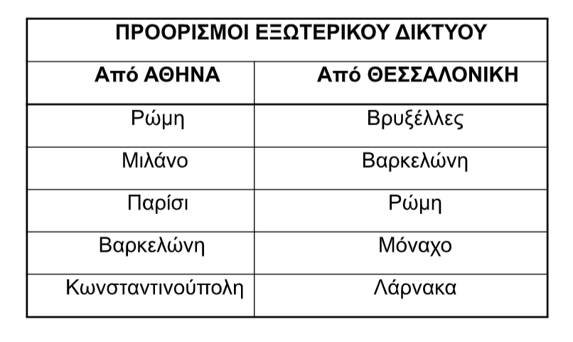 • Top προορισμοί εξωτερικού από τις δυο μεγαλύτερες βάσεις της Αθήνας και της Θεσσαλονίκης: