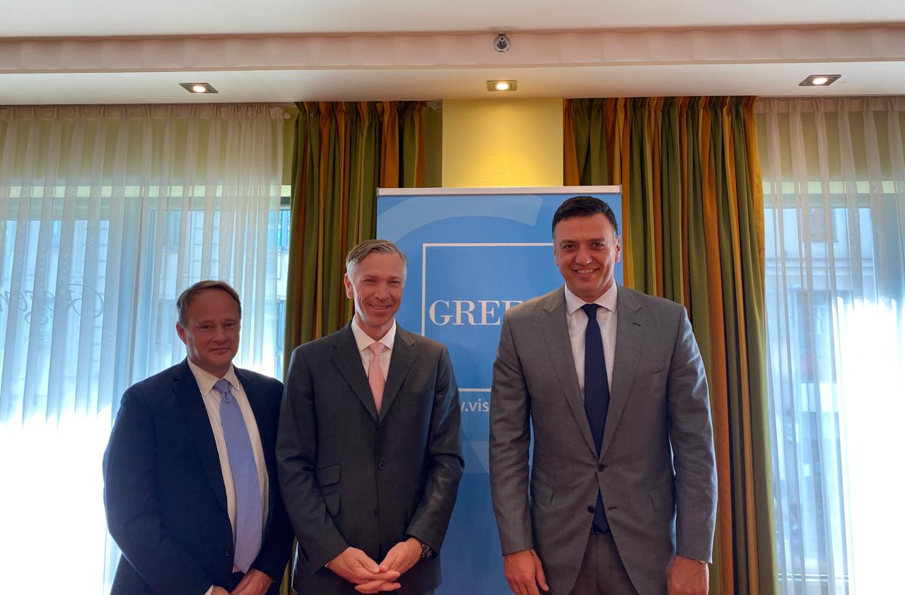Πιο συγκεκριμένα, στη συνάντηση που πραγματοποίησε με τον Headof Corporate International Relations and Government Affairs του Ομίλου Lufthansa, Kay Lindermann και τον Head of Government Affairs της Eurowings, Vladimirvon Schnürbein, ο κ. Κικίλιας περιέγραψε το πλαίσιο της στρατηγικής που αναπτύσσει το υπουργείο Τουρισμού για τις αεροπορικές εταιρείες προκειμένου να ενισχύσουν το πρόγραμμα των πτήσεών τους, τους χειμερινούς μήνες.