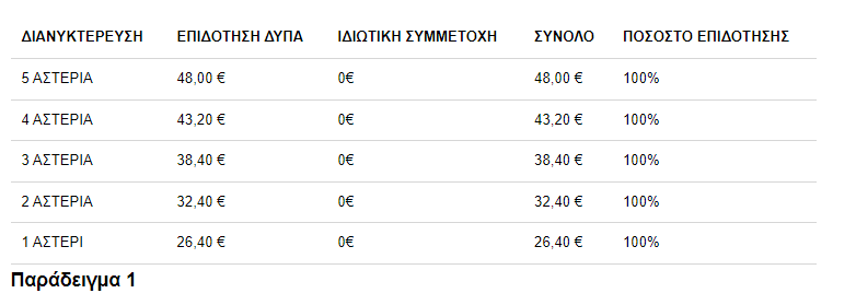 Για τη διαμονή το κόστος επιμερίζεται ως εξής: