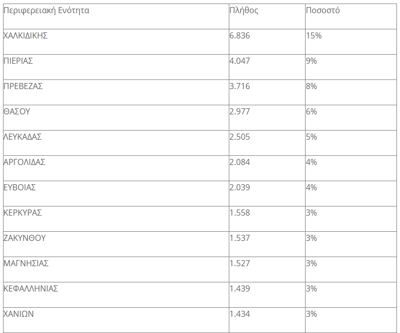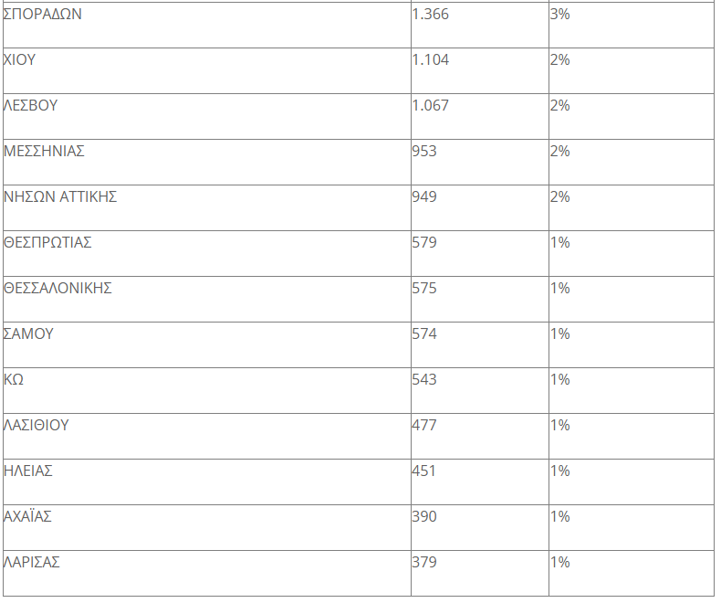 Ενδεικτικά, οι 25 περιφερειακές ενότητες με τον μεγαλύτερο αριθμό ενεργοποιημένων επιταγών σε τουριστικά καταλύματα κατά το διάστημα 1-31 Αυγούστου 2021 είναι οι εξής:
