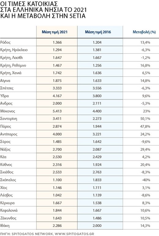 Οι τιμές κατοικιών ανά νησί
