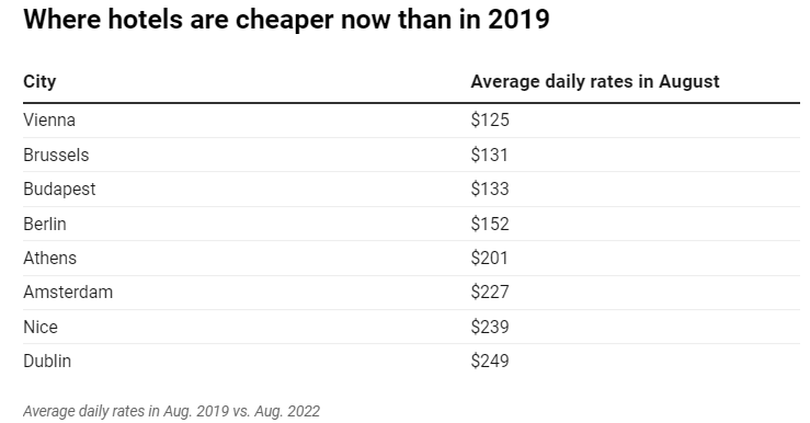 Έκπληξη προκαλεί το γεγονός πως, παρά τον πληθωρισμό και τις ανατιμήσεις των τελευταίων μηνών, το κόστος διαμονής σε τουριστικά καταλύματα σε διάφορες ευρωπαϊκές πόλεις μειώνεται.
