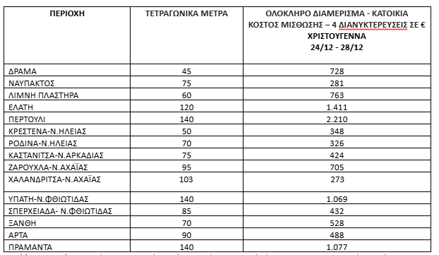 Πηγή/Επεξεργασία: Πλατφόρμες βραχυχρόνιας μίσθωσης / Πανελλαδικό Δίκτυο E-Real Estates , Ζητούμενο Κόστος διαμονής για 2 ενήλικες & 2 παιδιά, μπορεί να φιλοξενήσει και 6 άτομα ανάλογα με την πολιτική του εκάστοτε ιδιοκτήτη – διαχειριστή. Ολόκληρο διαμέρισμα ή/και κατοικία.