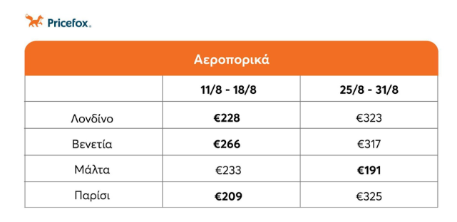 Τιμές αεροπορικών για το εξωτερικό σε σε 2 περιόδους του Αυγούστου