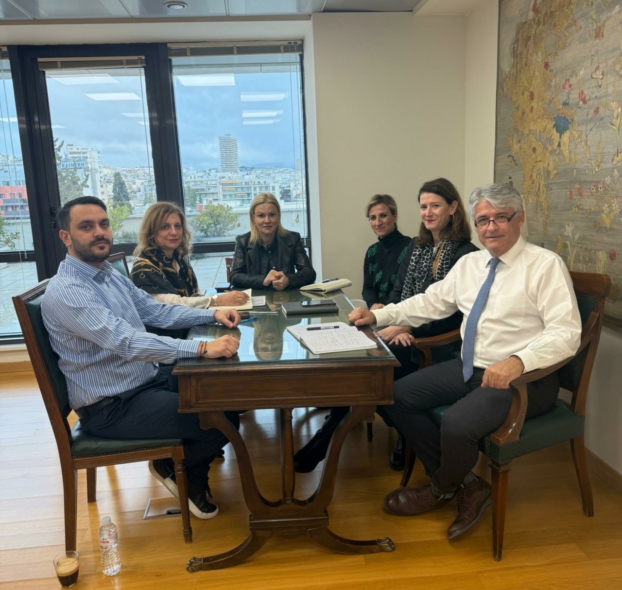 Στη συνάντηση συμμετείχαν ο Πρόεδρος της Ένωσης Ξενοδόχων Σαντορίνης Αντώνης Παγώνης, ο Πρόεδρος της Ένωσης Ενοικιαζόμενων Δωματίων “η Ατλαντίδα”, Λευτέρης Αναπλιώτης, η ΓΓ του Υπουργείου Τουρισμού Βασιλική Κουτσούκου και ο Σύμβουλος της Υπουργού Κωνσταντίνος Ζήκος.