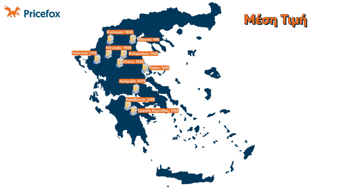 Όπως ήταν αναμενόμενο, κάποιες από τις υψηλότερες τιμές που σημείωσε η έρευνα του Pricefox.gr, συναντώνται σε μερικούς από τους πιο δημοφιλείς ορεινούς προορισμούς όπως η Ελάτη, τα Καλάβρυτα και το Μέτσοβο. Για τα συγκεκριμένα τουριστικά μέρη, μάλιστα, οι ταξιδιώτες θα πληρώσουν κατά μέσο όρο 265 ευρώ ανά διανυκτέρευση, 249 ευρώ ανά διανυκτέρευση και 198 ευρώ ανά διανυκτέρευση, αντίστοιχα κατά μέσο όρο.